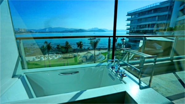 讓人感到意外的還是陽(yáng)臺(tái)上還有個(gè)浴缸還有座椅累的時(shí)候可以躺在休息休息吹著海風(fēng)還能看到一望無(wú)際的大海、這應(yīng)該就是所謂的海景房吧!