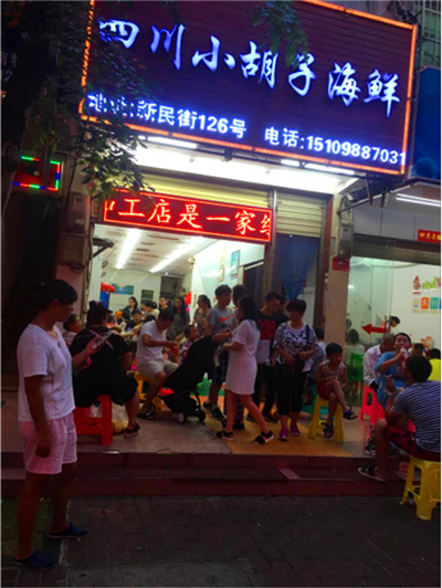 購(gòu)買完海鮮以后出來(lái)才發(fā)現(xiàn)天已經(jīng)黑了、左右兩旁都有很多的海鮮加工店能在這么多海鮮加工店中找一家不錯(cuò)的也是有點(diǎn)小難度的、再者說(shuō)我在選擇反面還是比較糾結(jié)的后還是選擇了四川小胡子家、網(wǎng)上的口碑相當(dāng)不錯(cuò)、吃過(guò)的都說(shuō)味道還不錯(cuò)我是一個(gè)比較相信大眾口碑的人、等了好一會(huì)才有位置為了能吃上一頓海鮮也是很辛苦海鮮加工的價(jià)格都是明碼標(biāo)價(jià)的貼在墻的右手邊上有不明白的小伙伴可以看一下。