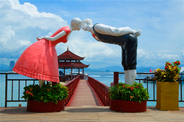 在蜈支洲島也有著美麗的傳說(shuō)而這情人橋,原是座鐵索橋,是當(dāng)年守島部隊(duì)的海上瞭望點(diǎn)。走在搖搖晃晃的鐵索橋上,需要幾分膽量和機(jī)靈。有些小姐既想過(guò)橋到瞭望點(diǎn)里體會(huì)一下,又怕掉進(jìn)海水里,過(guò)橋時(shí)緊緊抓住朋友的手不放,因此這橋又被戲稱為“情人橋”。后來(lái)該島為客人著想,故將原來(lái)的鐵索橋改造成如今的木板橋。