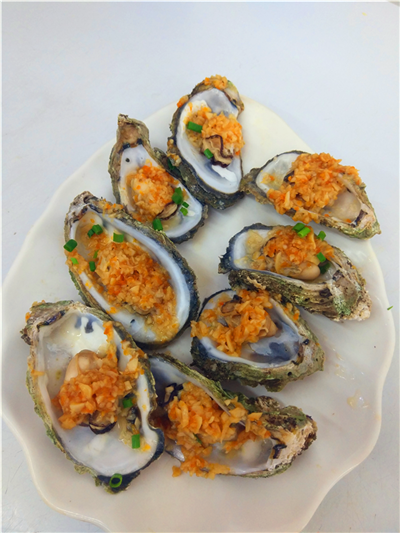 這也是服務(wù)員建議我清蒸比較好吃就聽(tīng)她的了、這叫牡蠣開(kāi)始我也不知道叫什么是賣海鮮的阿姨告訴我的常見(jiàn)的吃法就是清蒸了上面放的是蒜蓉很香、味道極為鮮美。