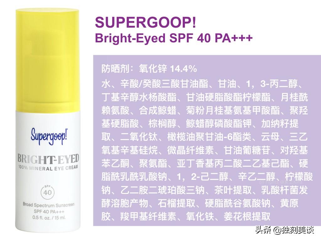 這款產(chǎn)品,是把防曬和眼霜結(jié)合到一起,用的防曬劑是「氧化鋅」,性很高。
