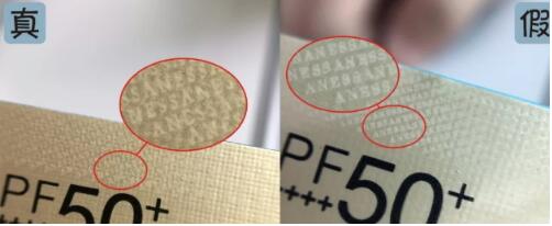 的口字中間用的是一橫,而假貨用的是兩點水,黑字這個點不僅僅是存在于安耐曬,很多日本產(chǎn)品 假貨商始終都是沒有更改。