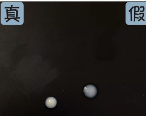 從質(zhì)地上區(qū)分,的質(zhì)地是類似于涂改液狀的液體,而仿冒品類似于牙膏狀的膏體。