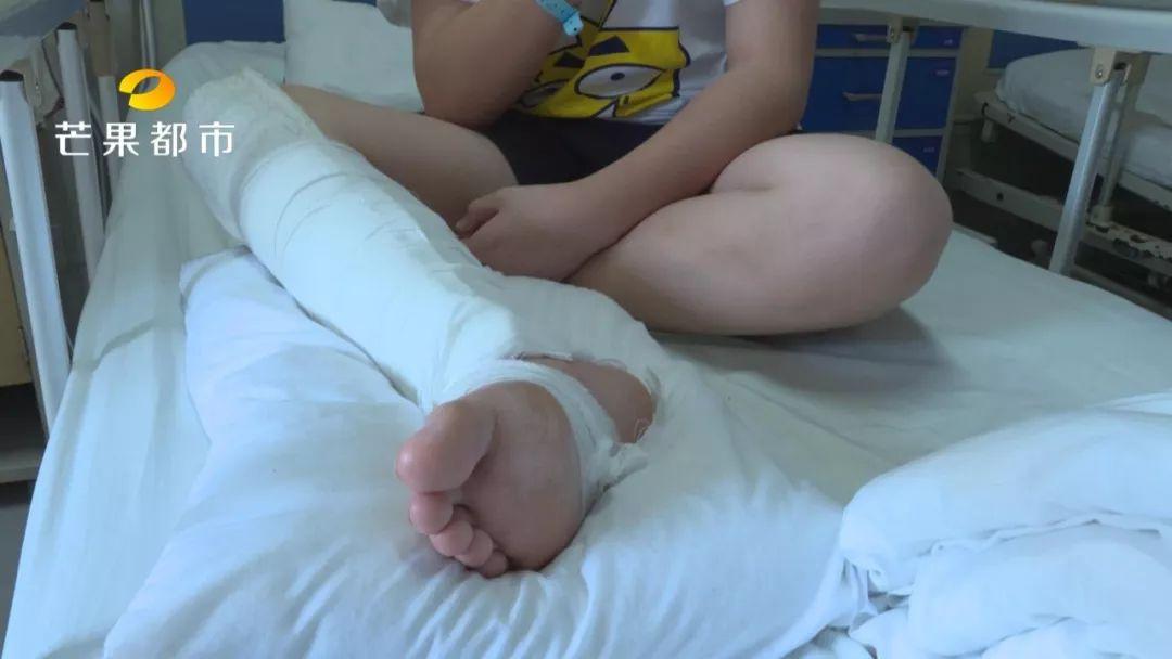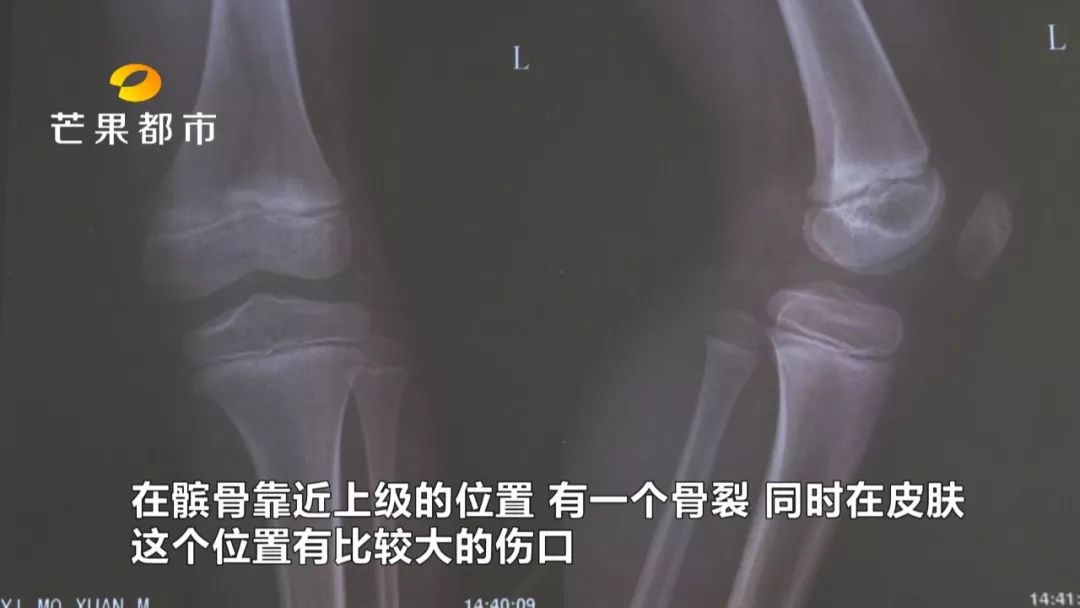 經(jīng)醫(yī)生檢查,玻璃碎片不僅割傷了孩子的皮肉,還造成左膝髕骨骨裂、髕韌帶斷裂、膝關(guān)節(jié)破損。