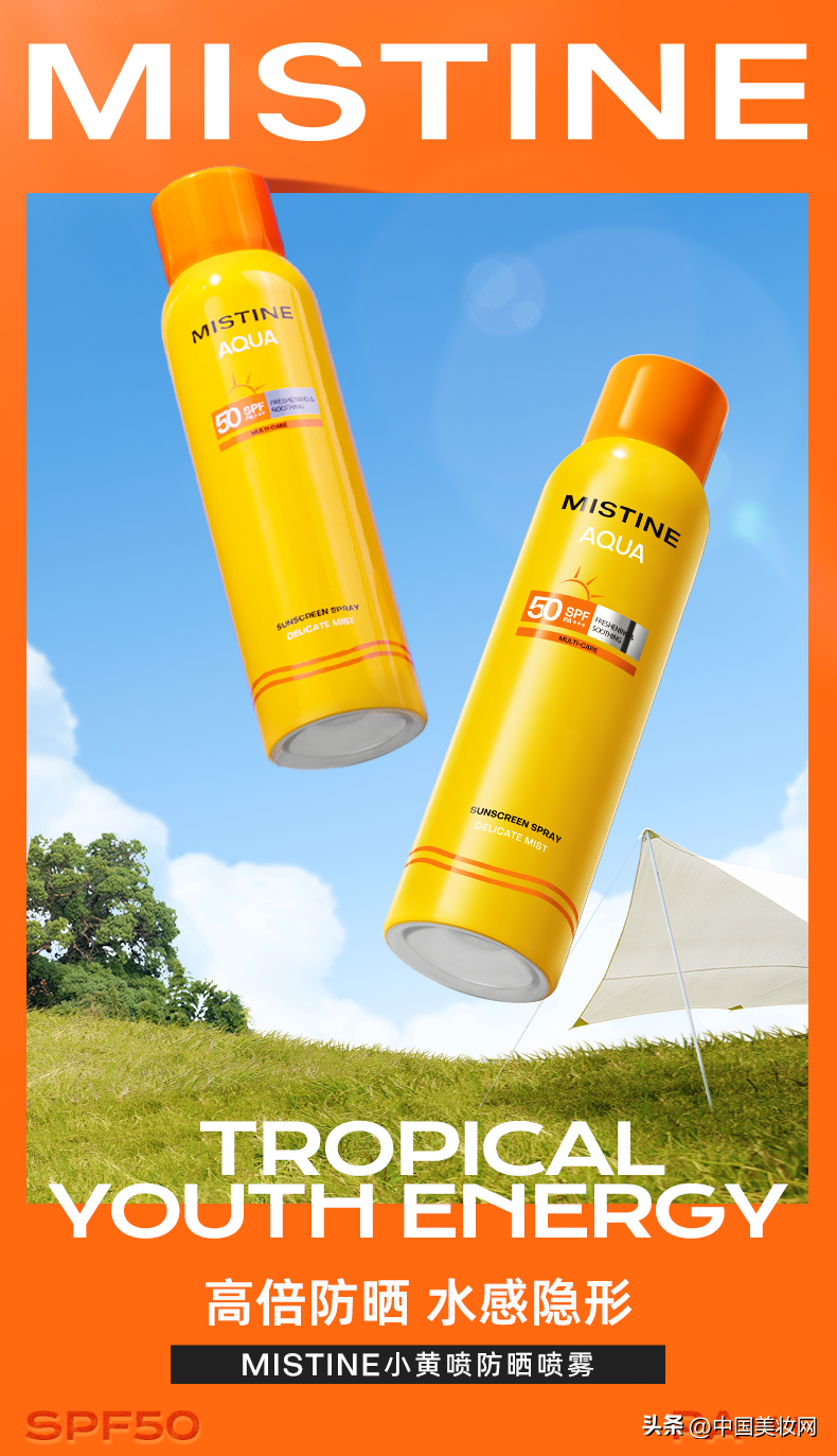 而在防曬噴霧暢銷榜中,Mistine蜜絲婷的“小黃噴”總是占有一席之地,曾被一眾明星力薦。在此次產(chǎn)品升級中,Mistine蜜絲婷也進一步強化了純化小黃噴的海島級防曬“滅火器”形象。以SPF50+、PA+++的高倍防曬值,5重UVB吸收劑,吸收過濾中波紫外線,2重UVA吸收劑,強強聯(lián)合吸收過濾長波紫外線, “5B+2A”實現(xiàn)七重防護,高對抗光老化,黃金配方,打造廣譜防曬。