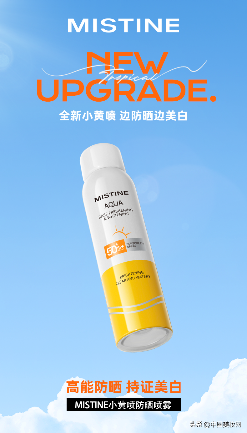 值得一提的是,Mistine蜜絲婷的水活多美白防曬噴霧(又稱“美白小黃噴”)也是榜上有名,不僅擁有SPF50+、PA+++的高倍防曬值,并持美白防曬雙特證,采用了“3D掃黑技術(shù)”,實現(xiàn)層層深入美白。