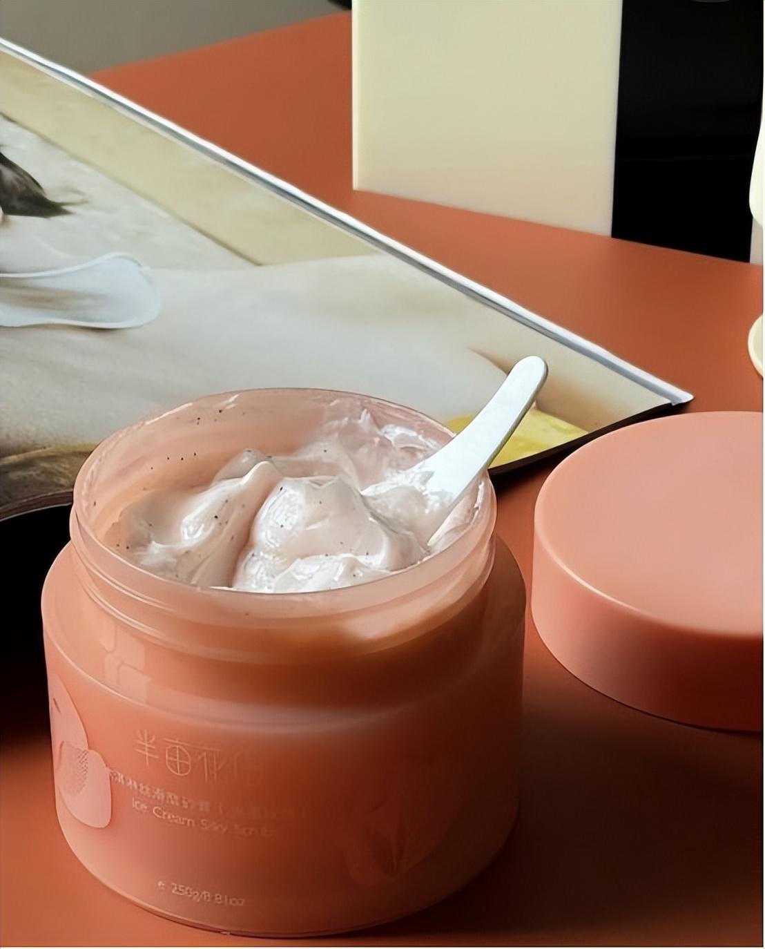3、半畝花田冰淇淋磨砂膏它打開就是軟軟糯糯的一團粉膏,檸檬和玫瑰的香味交雜著鋪面而來,抹開后細膩的植物顆粒清晰可見,感覺整個空氣中都是甜甜的味道,我的少女心真的要溢出來了。