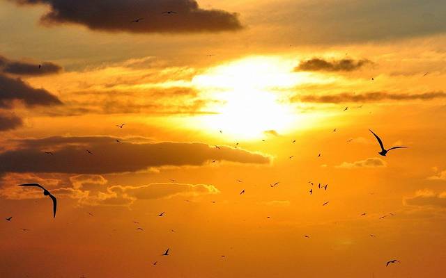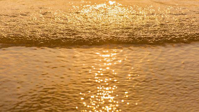 日落時(shí)間很短暫,剛赤腳跑到海邊,夕陽(yáng)便將周圍的一切染成了金色,海面上波光粼粼,像是灑滿了碎金子,美好且夢(mèng)幻。