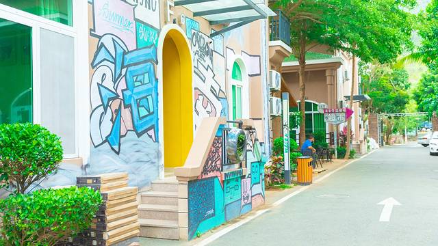 三亞 有大片涂鴉墻的地方不多,梧桐墅酒店這里酷女孩們肯定喜歡。梧桐墅酒店就在市區(qū)附近,導(dǎo)航直接就能找到,過(guò)來(lái)方便。