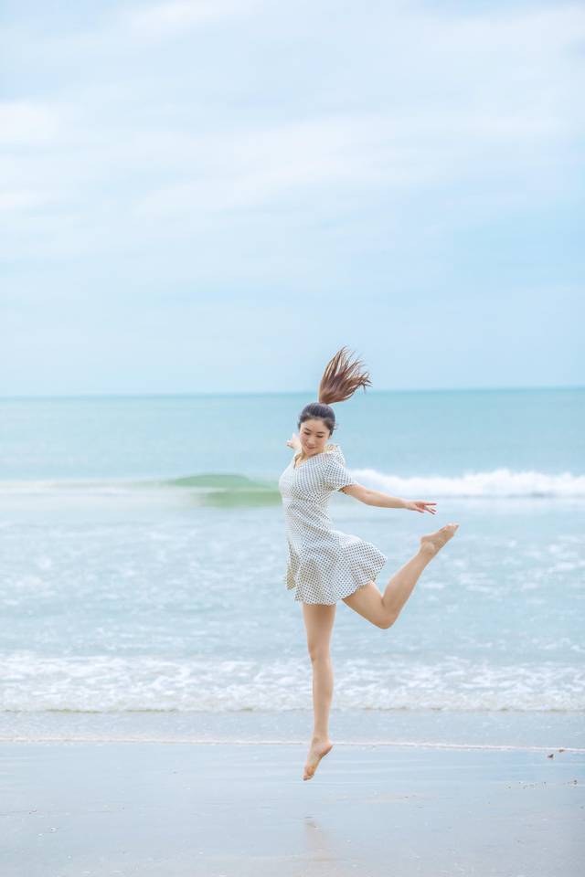 往沒(méi)人的地方走了走,在夕陽(yáng)之下,水面上一片光亮,這里沒(méi)有游客,只有幾個(gè)可愛(ài)的孩子撿著貝殼,歡笑聲不斷。閨蜜以前學(xué)的是舞蹈專業(yè),終于看到大海了,相當(dāng)興奮,開(kāi)始在海邊跳了起來(lái)。