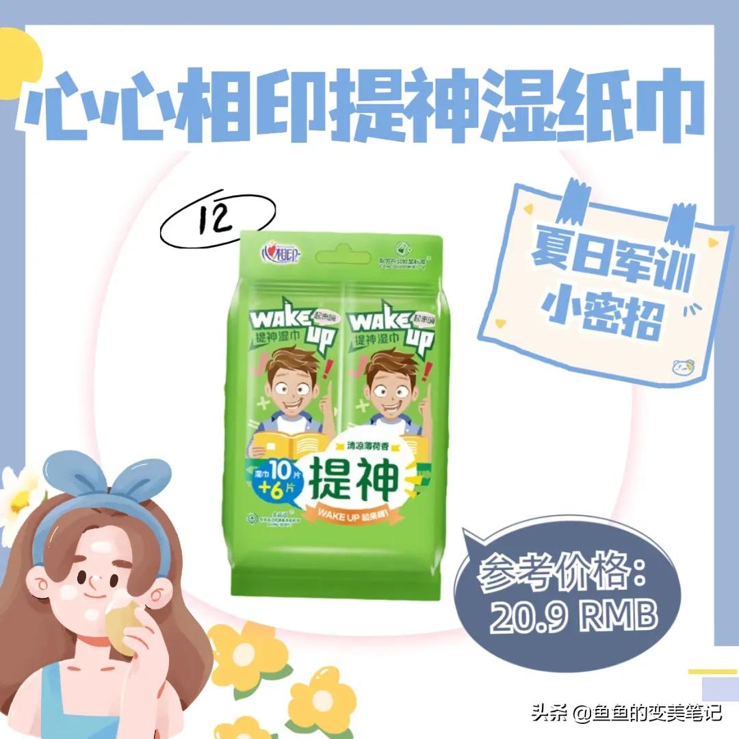 普通的紙巾我知道你們肯定會備的,但在軍訓這種又汗又熱的情況下,更推薦濕紙巾。擦汗的時候,順便清潔皮膚,不只是擦干,還擦得干凈,能讓皮膚保持清爽。