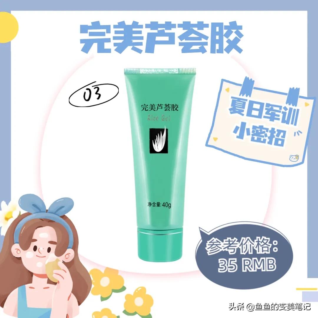 曬后黃金的修復時間是曬后72小時內(nèi),不想軍訓后變成非洲酋長,曬后第一時間給皮膚降溫,使用涼水洗臉,(水溫不要太冰,不然皮膚會受到冷熱兩級刺激)