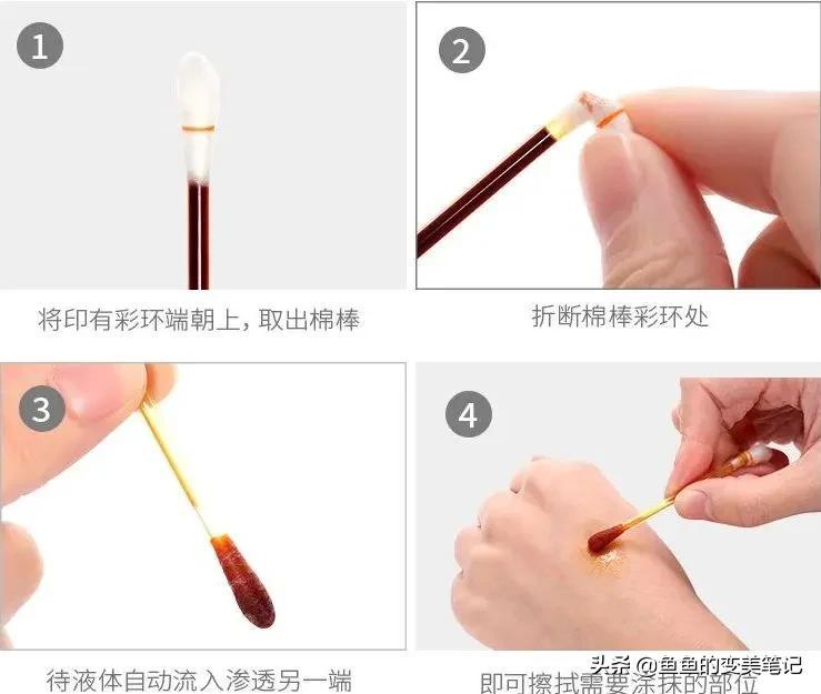 棉棒一頭彩環(huán)設計,沿著紅線掰開 ,碘伏就會吸收到棉頭里,獨立包裝的方便又衛(wèi)生。