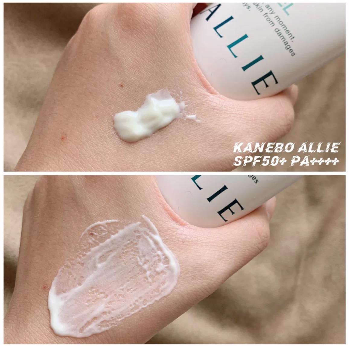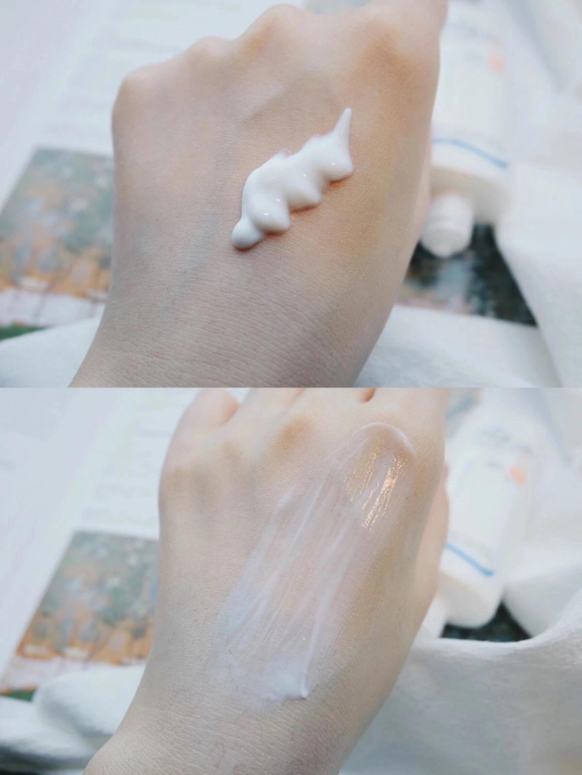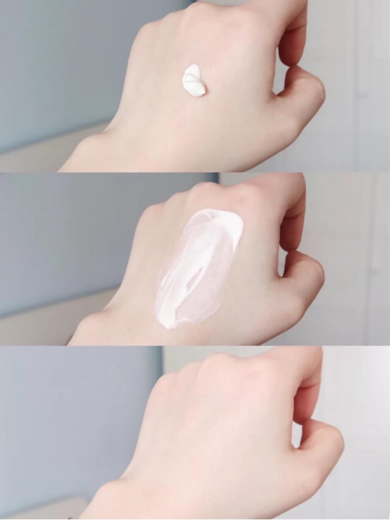 乳液質地,幾乎沒有流動性,好推開,味道比較淡,推開透明沒有潤色果,與小咔自己全年愛用的蘭蔻清爽版防曬霜是姐妹,基本上就是味道跟微微質地上不一樣,其他的都是一樣的哈,包括整體的配方。
