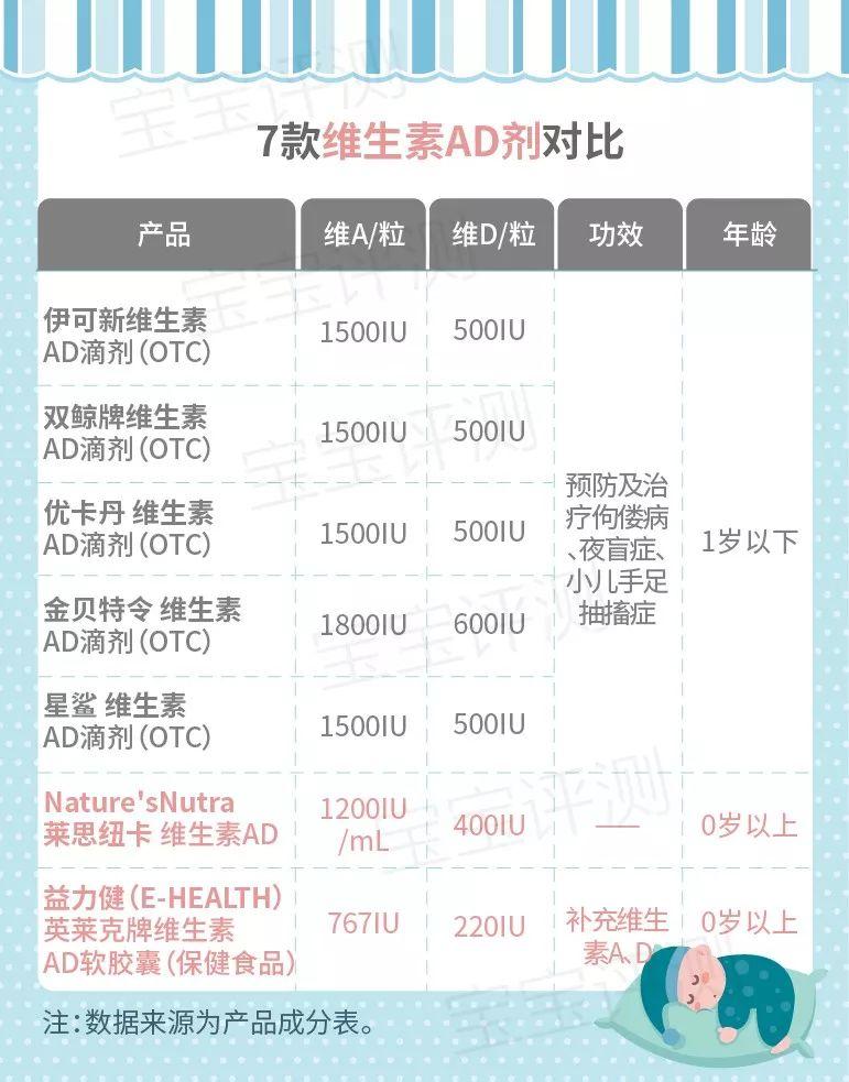 4、寶寶輕微厭食其實(shí)不容易缺少維A,因?yàn)橐话闩浞侥叹SA都有180IU/100mL,米粉則有250IU/25g,如果單純想給寶寶補(bǔ)充維D的話,就不建議選擇維生素AD劑,防止維A過量。