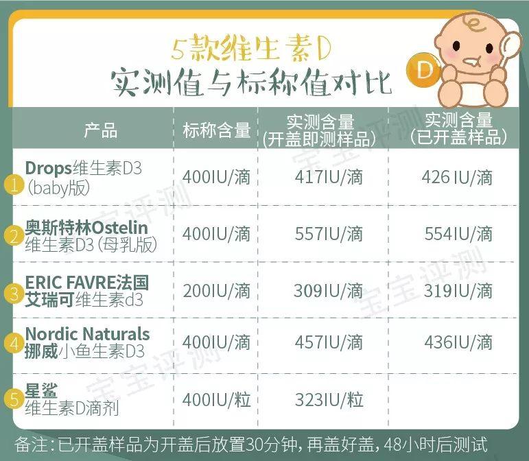其中,更接近標(biāo)稱值的是Ddrops。原則上,越接近標(biāo)稱值越好,更“真材實(shí)料”,也更容易讓家長掌握補(bǔ)充的量。