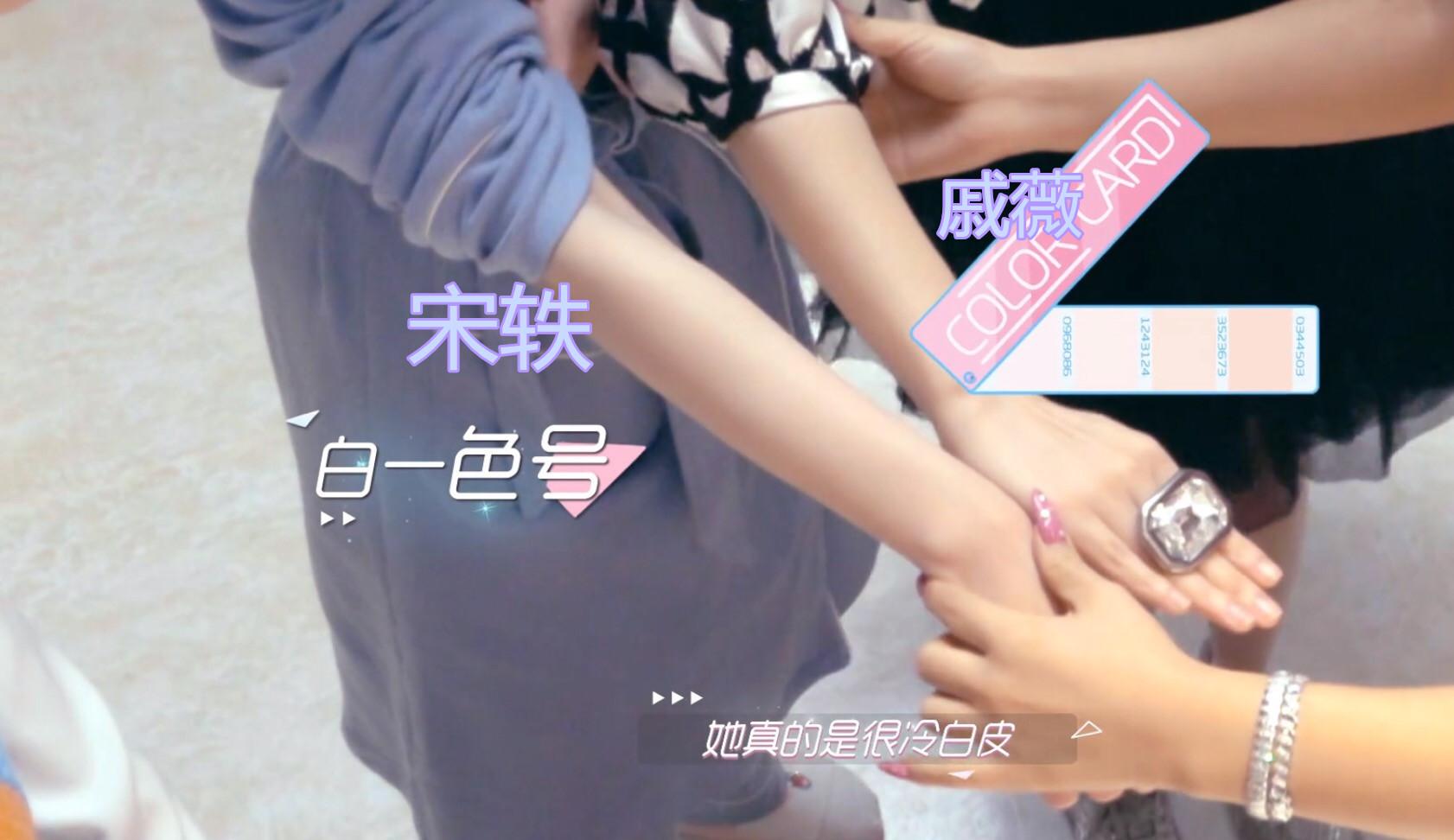 她有多白呢?和冷白皮何穗同框不輸。在她與何穗的“夾擊”之后,程曉玥秒變黑黃皮。