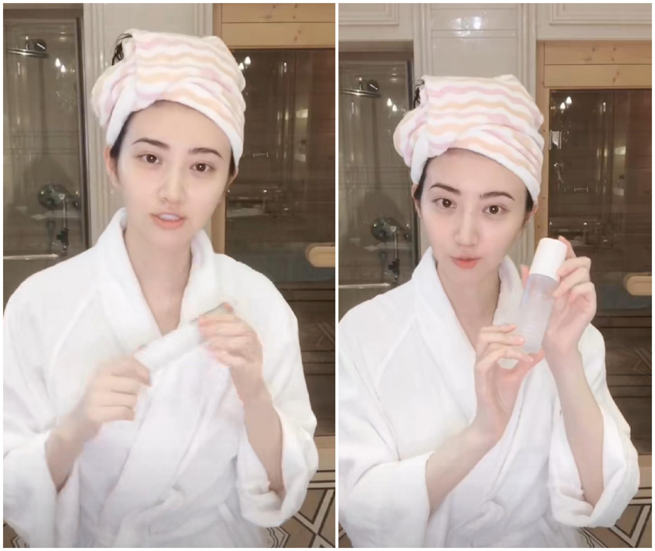相比之下,景甜的常規(guī)護(hù)理會(huì)精簡(jiǎn)一下。敷面膜之前,她會(huì)先噴兩種清爽補(bǔ)水的噴霧。