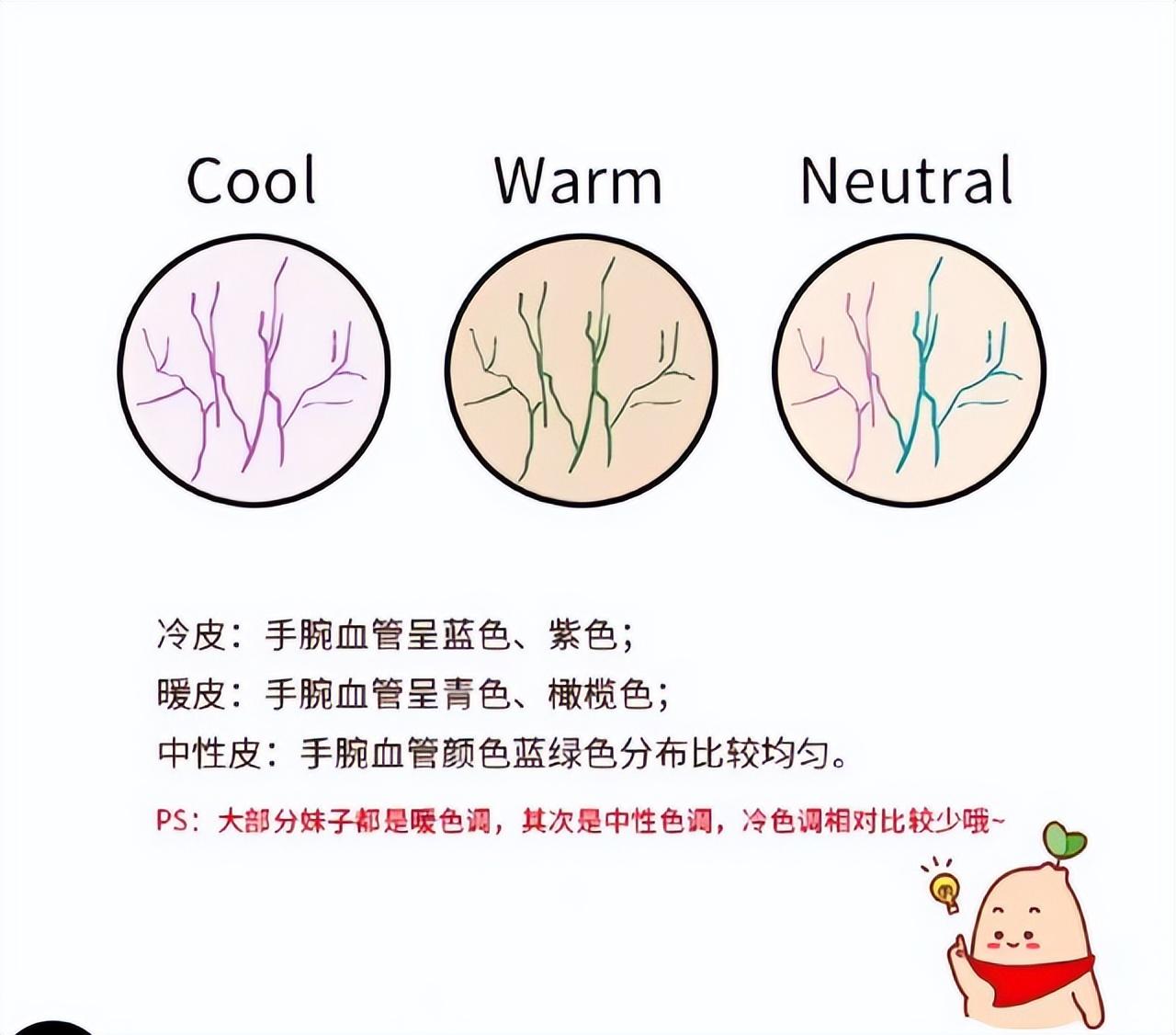 而中性皮膚介于二者中間,手腕血管一半藍(lán)一半綠。