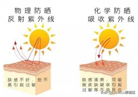 化學防曬顧名思義會發(fā)生化學反應,防曬霜里面的物質會吸收紫外線然后進行作用轉化成其他物質排出皮膚外。通?;瘜W性防曬霜對皮膚傷害較大,容易過敏,但是使用感比較清爽。