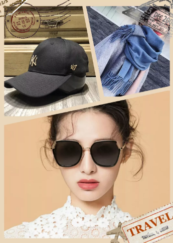 ▲季節(jié)產(chǎn)品:圍巾、帽子、太陽鏡、太陽傘等