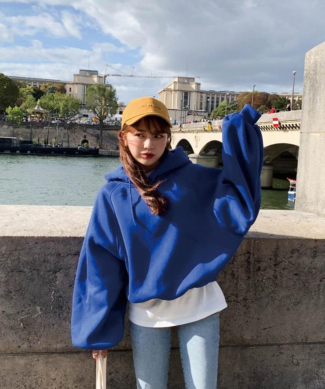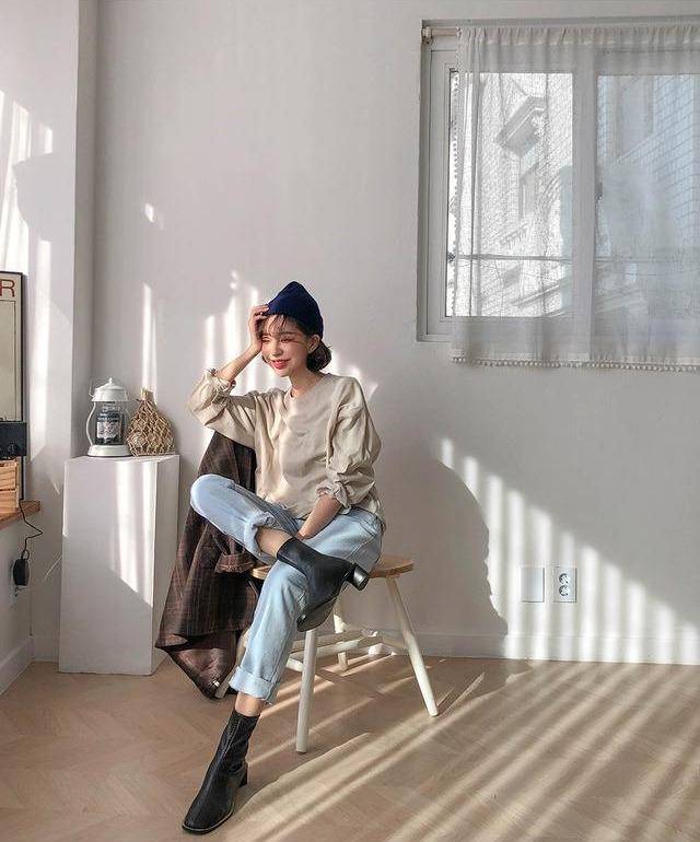 搭配帽T就是match?。∵@樣的輕松打扮在韓國(guó)可是隨處可見(jiàn)哦!
