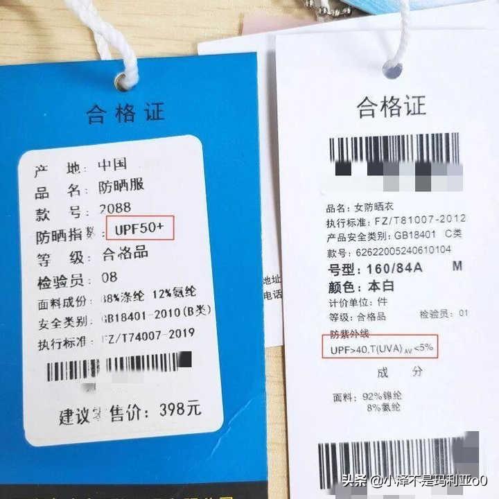 另外,我們還需要關(guān)注紫外線防護系數(shù)(UPF值),一般來說UPF值越大,防紫外線果越好。根據(jù)國標《紡織物 防紫外線性能的評定》規(guī)定,UPF40以上的才算合格,所以防曬服至少要買UPF40+的防曬服才有足夠的防曬果。