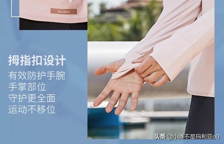 6、附加防曬設(shè)計另外,在選購時還可以關(guān)注下防曬衣是否有附加防曬設(shè)計。比如增加了拇指扣的防曬衣,外出時手部也能夠有防護,而有面罩設(shè)計的防曬衣還能防護臉部,防曬范圍更廣,也更加實用。