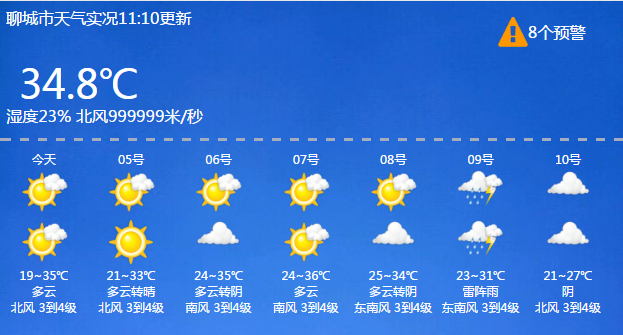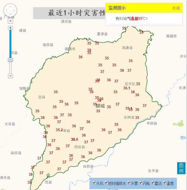根據(jù)預(yù)報,預(yù)計4日白天,菏澤、濟寧、聊城、濟南、泰安、淄博和濰坊7市的高氣溫在37℃以上,其中菏澤、聊城、淄博和濰坊的部分地區(qū)可達39~40℃;棗莊、臨沂和德州3市的高氣溫在35℃以上。