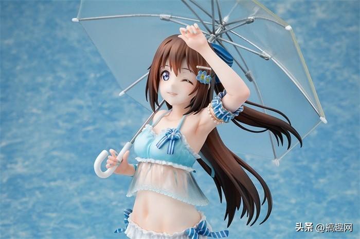 櫻坂雫 臺場泳裝少女Ver. 1/7手辦全高約為27厘米。虹咲學園一年級生,認真可靠的優(yōu)等生,演劇部所屬部員櫻坂雫以“2C=がろあ”所繪制的泳裝造型進行立體化。黑色的長發(fā),姣好的面容搭配眨眼的表情,單手遮陽十分可愛。水藍色的泳裝上衣有著半透明的下擺,下裝搭配著藍白色緞帶蝴蝶結,一雙長腿搭配沙灘涼鞋十分吸引人們目光。右手拿著半透明的遮陽傘,一沙灘為主題的底座展現著夏天的主題,人偶手中的遮陽傘也采用了可拆卸設計。
