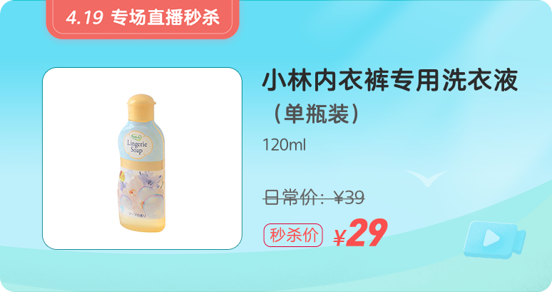 生理期必備,日本小林內(nèi)衣褲專用洗衣液,直播間價 29 元。(限量 2000 份)