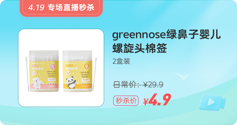 寶媽愛用的 greennose 綠鼻子嬰兒棉簽,直播價 4.9 元。(限量 300 份)