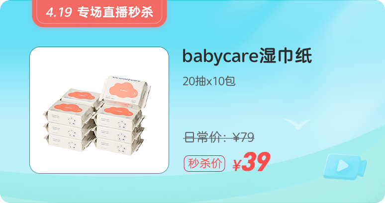 比普通濕巾更厚的 babycare 嬰兒手口濕巾,直播間價 39 元。(限量 500 份,秒完即恢復(fù)日常價 79 元)