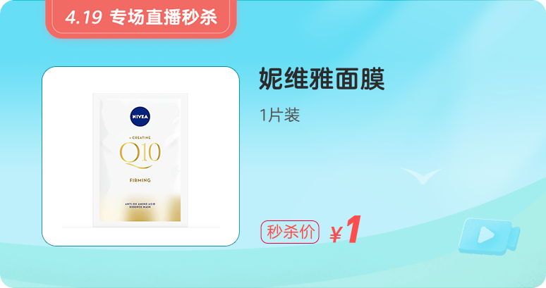 德國百年護膚品牌,妮維雅緊致面膜(1 片裝),直播間價僅需 1 元。(限量 1000 份)