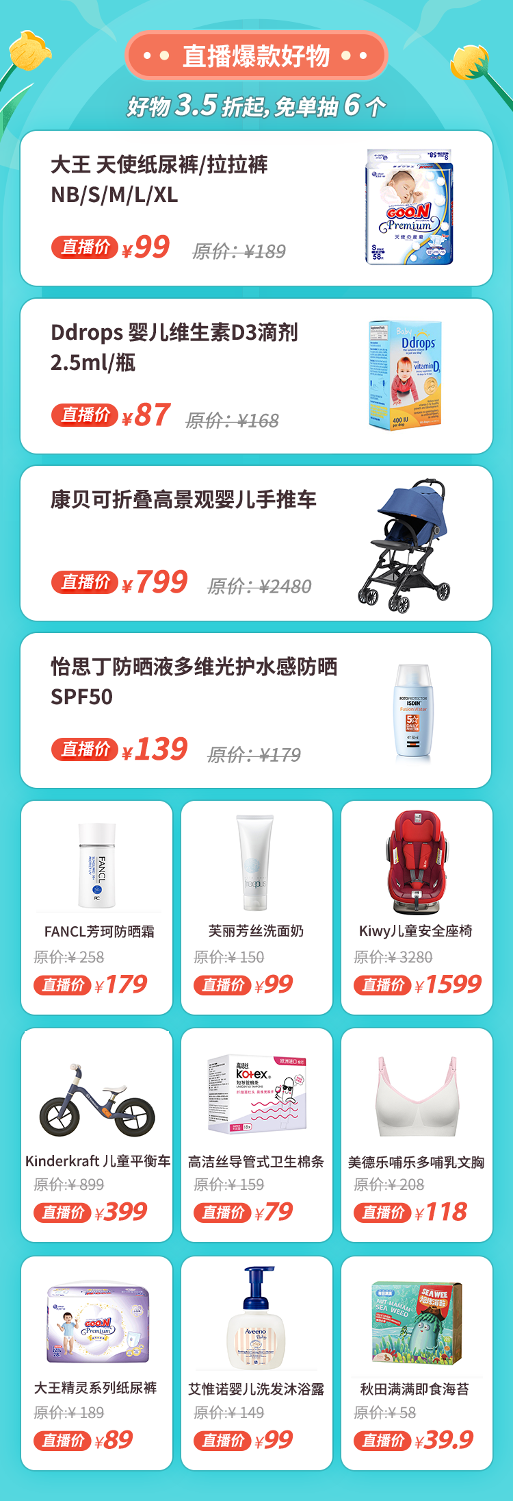 25 個爆款母嬰好物直降。大王紙尿褲、怡思丁防曬霜、Ddrops 維生素D3 滴劑、Aveeno 潤膚霜、美德樂哺乳文胸等母嬰必備好物,低 3.5 折起。
