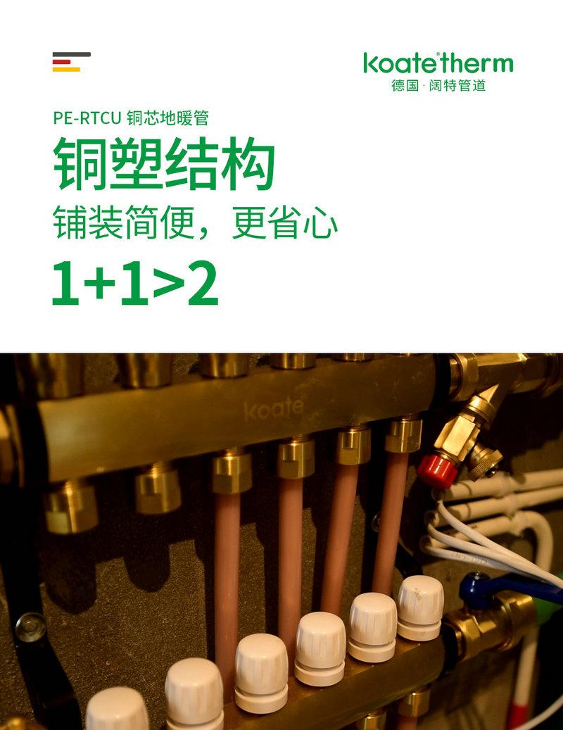德國闊特koate?therm PE-RTCU銅芯地暖管道,融合銅和塑料兩種材質(zhì)的各自性能優(yōu)勢,取長補短,更匹配家裝地暖用戶對管道功能的核心訴求。