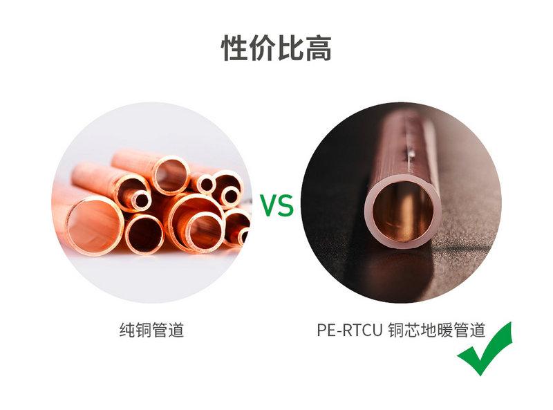由于用外層PERT替代實現(xiàn)了環(huán)剛度需求,內(nèi)層銅芯可以比純銅管的管壁薄很多。因此,在各項應(yīng)用性能堪比純銅地暖管的前提下,銅芯地暖管的成本相比純銅地暖管低很多,性價比更高。
