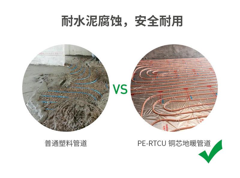 外層PERT發(fā)揮了塑料優(yōu)勢,輕松耐水泥腐蝕。而內(nèi)部銅芯加持,相比塑料管道更耐高壓、耐高溫,工作壓力可達40公斤,工作溫度可達100℃。因此更加耐用,真正做到與建筑物同壽。