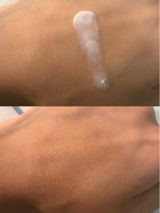 產(chǎn)品的防曬值為SPF50+,質(zhì)地是白色的水狀,流動性的強(qiáng)。涂抹在臉上開始會覺得油油的膚感后面會逐漸形成“膜”,摸起來的手感很絲滑。這款防曬霜大的優(yōu)點(diǎn)在于成膜的速度快,防水防汗,對于夏天想去游泳的美寶寶來說在適合不過啦~
