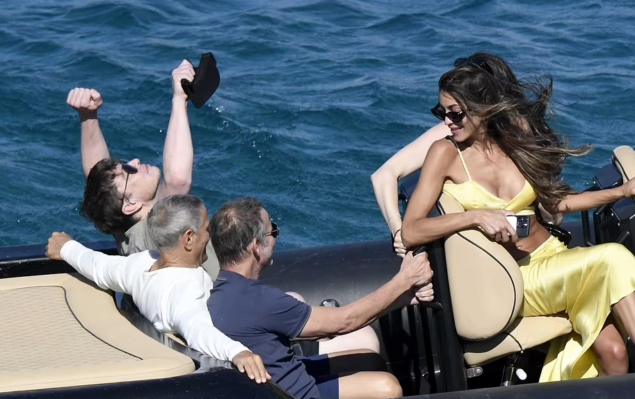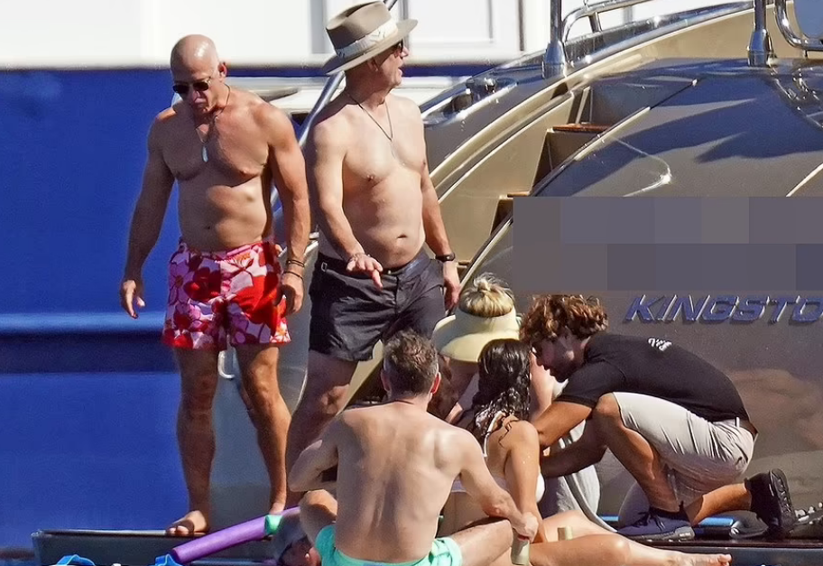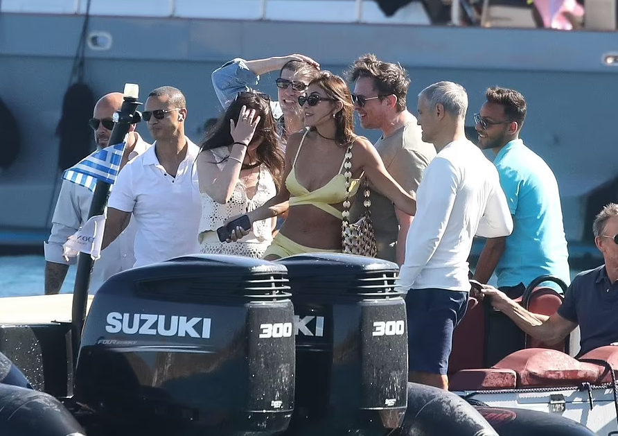 這一行人相當悠閑地享受著度假時光,先是在餐廳享用了一頓美餐,接著又乘坐私人游船游覽了風(fēng)景如畫的島嶼。