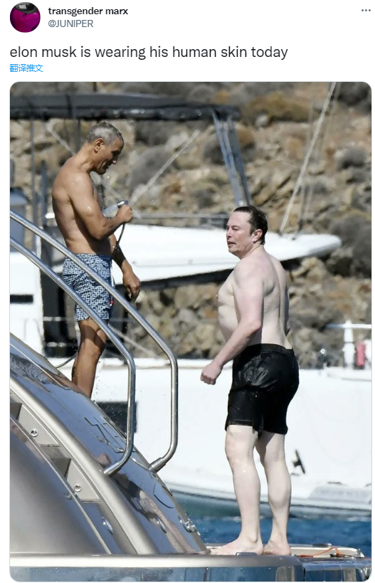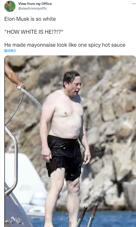 “埃隆馬斯克的身體太白了,他看起來像是伏地魔把衣服脫掉之后的樣子?!?/span>