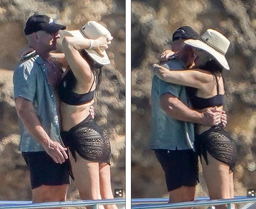 不過他們度假的關(guān)鍵要素,不只有貝佐斯的肌肉,還有大量的秀恩愛。