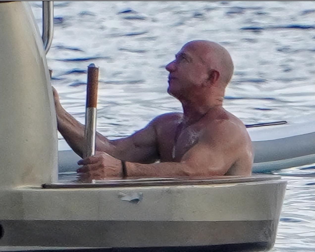 多少次游艇度假,貝佐斯都盡情地展示了自己的鍛煉成果。