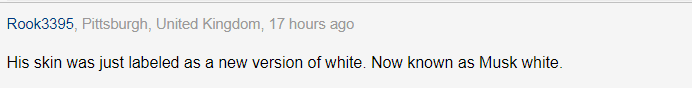 有人建議用他的膚色來命名一種白,名字就叫“馬斯克白”。