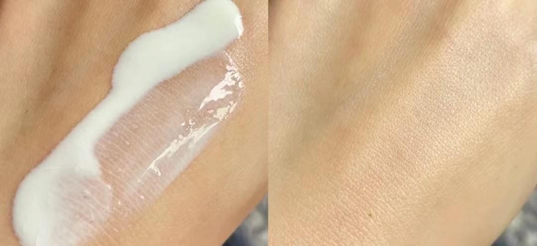 它的質(zhì)地很像是乳液的觸感,涂抹順滑,成膜后皮膚表面的油光淡,是混合皮和干性膚質(zhì)很喜歡的膚感。