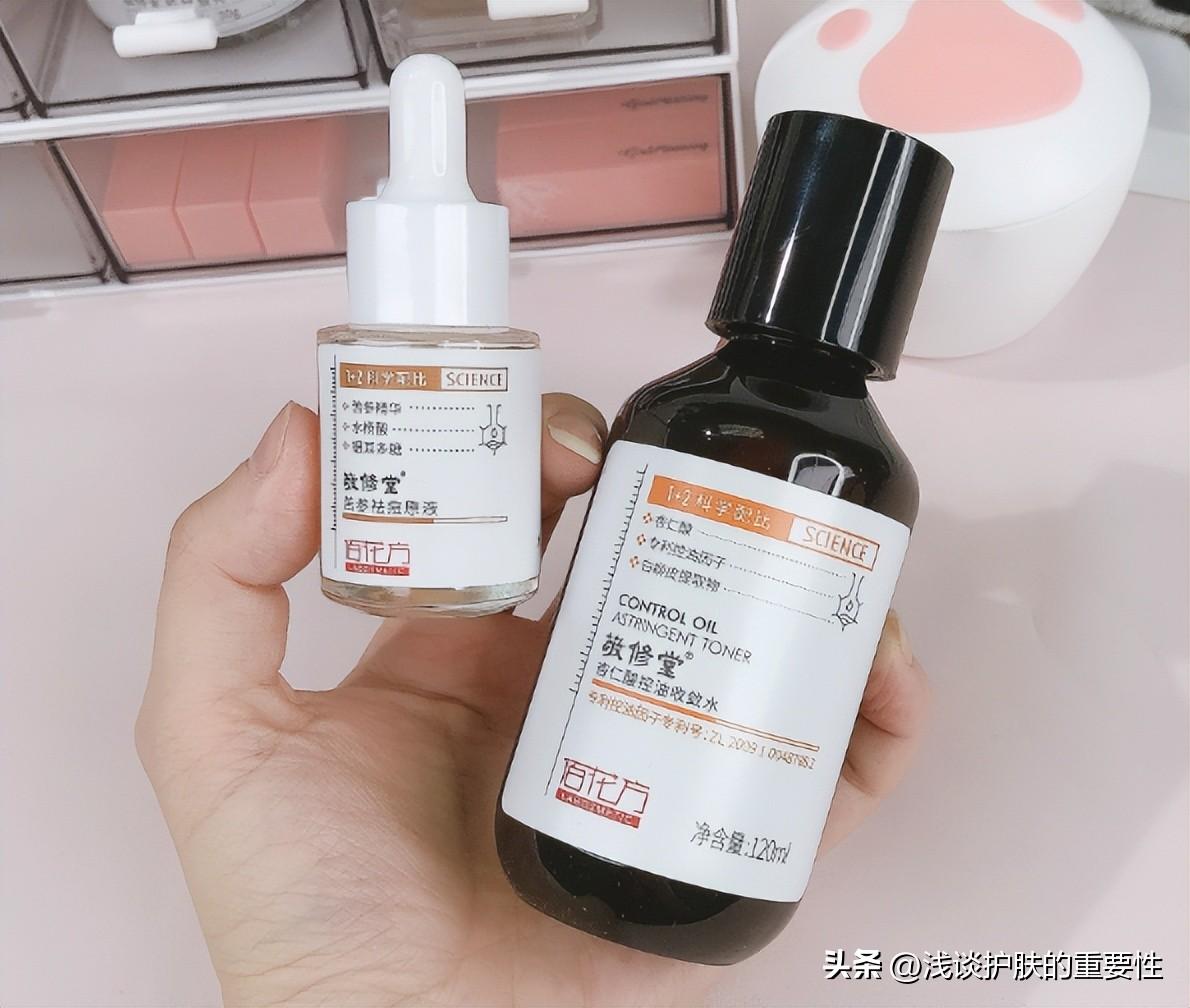 佰花方是敬修堂旗下的護膚品品牌,專為不同肌膚需求研發(fā)的產(chǎn)品,旗下有不同系列的產(chǎn)品。杏仁酸控油細膚收斂水+苦參原液就是對抗油痘的克星,0.2%杏仁酸果剛剛好,控油因子遇到油脂時迅速乳化分解日常當(dāng)爽膚水用。苦參原液含有2%的水楊酸,可以剝落老舊角質(zhì),疏通毛孔,并且添加苦參堿中和酸的刺激性,能有舒緩控油,消炎祛痘。兩者搭配在一起使用就是油痘肌姐妹的救星啦!
