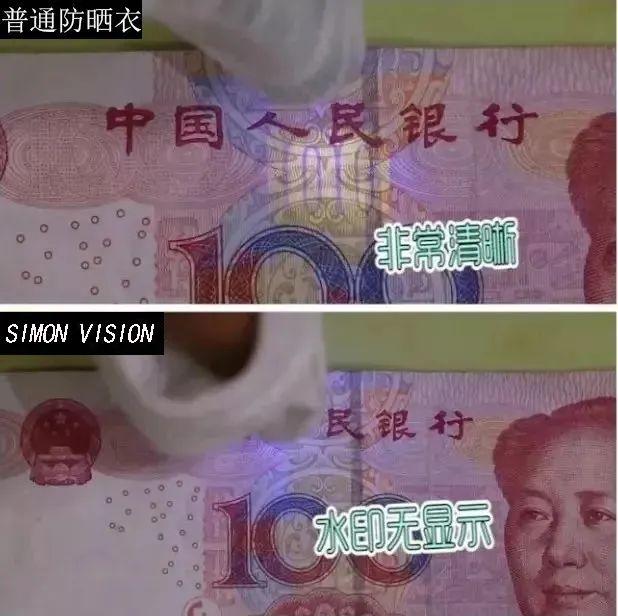 隔著普通防曬衣的面料,依然能清晰的照出防偽碼;而隔著SIMON VISION的面料,絲毫照不出防偽標志,足以證明它隔離紫外線的果賊強!