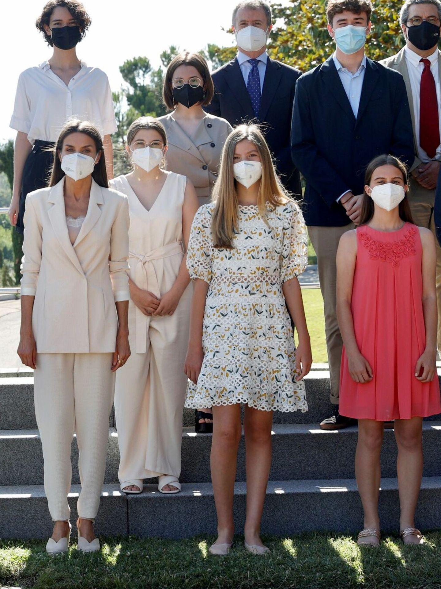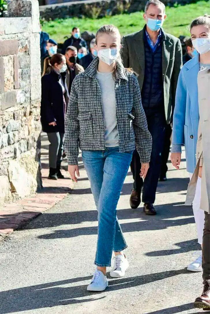 萊昂諾爾在2021年穿過一件黑白格紋外套,索菲亞公主在夏季度假中穿過他家的套裝裙和背帶褲。