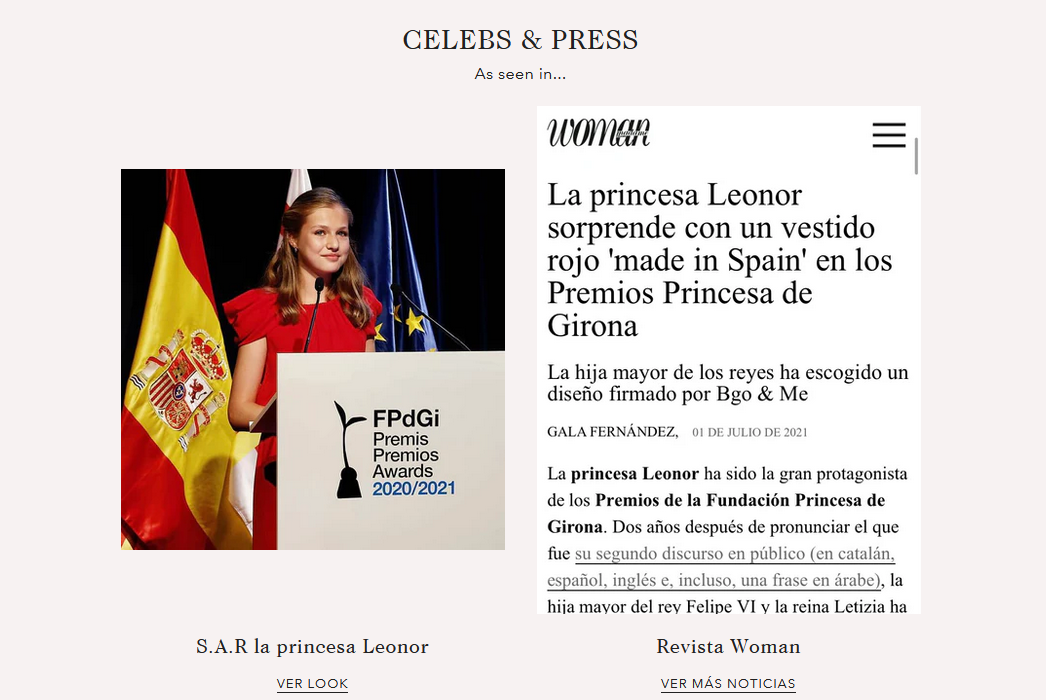 這個牌子基本上是被萊昂諾爾公主帶火的,目前官網(wǎng)上還掛著她穿著該品牌的照片,品牌成立于2008年,總部位于加利西亞,但只在馬德里和奧維耶多有專賣店。