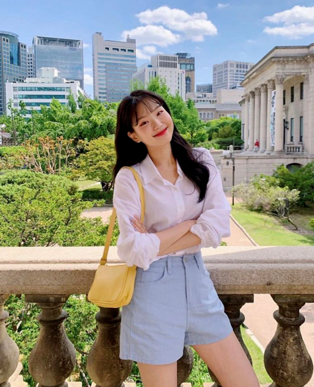 防曬和短褲也是大家經常看到的裝扮,短褲也是夏天經常必備的單品之一,白色的襯衫更映襯皮膚白皙。